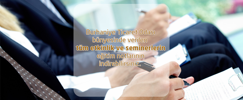 Burhaniye Ticaret Odası bünyesinde verilen tüm etkinlik ve seminerlerin eğitim notlarını aşağıda linkleri takip ederek indirebilirsiniz.