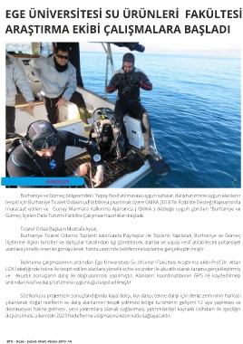 Belirleme çalışmalarının ardından Ege Üniversitesi Su Ürünleri Fakültesi Araştırma ekibi Prof.Dr. Altan