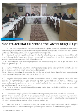 31 Ocak 2019 Perşembe günü Burhaniye Ticaret Odası Toplantı Salonunda Sigorta Acenteleri sigorta 8) Acentelerin devamlılığını sağlayabilmesi için kazanması gerekli olan komisyonların düşmeden,