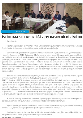 İSTİHDAM SEFERBERLİĞİ 2019 BASIN BİLDİRİMİ HK Dünün en çok kazananları, Türkiye'ye yatırım yapanlar, Türkiye'de istihdam sağlayanlar oldu. Yarının