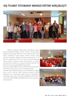 Toplantıya Balıkesir İl Kültür ve Turizm Müdürü Mustafa Çaltı, GMKA Yetkilisi Kerem Öner ve Candan Şahin, Gümrük Tarife İstatistik Pozisyonu, GTİP Tespiti Dış ticarete