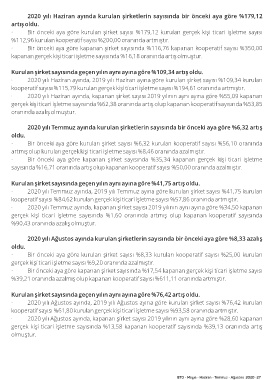 azalarak 4.028 adet oldu. 2020'nin ilk 7 ayında (24.244 kooperatif sayısı %115,79 kurulan gerçek kişi ticari işletme sayısı %194,61 oranında artmıştır.