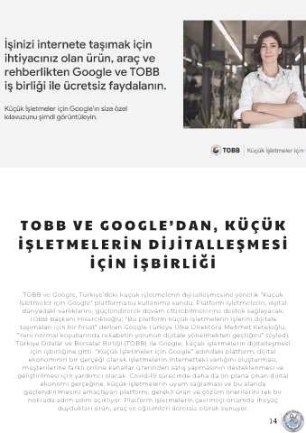 TOBB ve Google, Türk ye’dek küçük şletmeler n d j talleşmes ne yönel k “Küçük