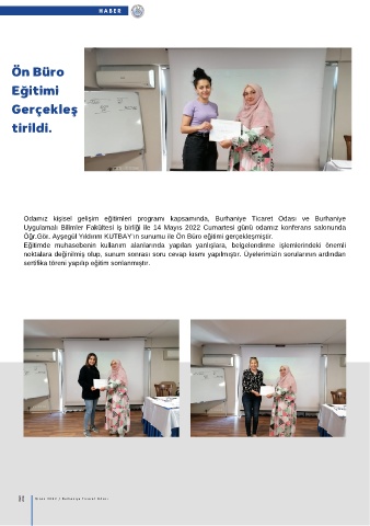 Odamız kişisel gelişim eğitimleri programı kapsamında, Burhaniye Ticaret Odası ve Burhaniye