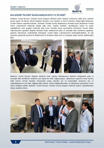 gereken laboratuvar analizlerinde Burhaniye Ticaret Odası Laboratuvarını kullanabileceklerini, iki oda