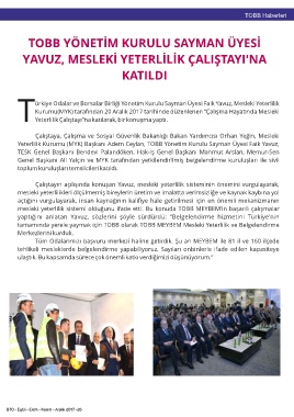 ürkiye Odalar ve Borsalar Birliği Yönetim Kurulu Sayman Üyesi Faik Yavuz, Mesleki Yeterlilik iyileştirilmesi kapsamında iş sağlığı ve güvenliği