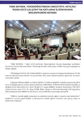 çalışmalardan ve desteklerinden ötürü sektör temsilcilerine teşekkür ediyoruz" dedi. TOBB MEYBEM, 1 Mart 2018 tarihinde Yükseköğretim Kurulu Başkanlığı tarafından