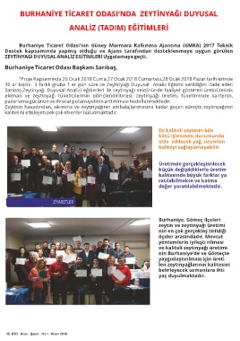 30 ar kişilik 3 farklı gruba 1 er gün süre ile Zeytinyağı Duyusal Analiz Eğitimi verildiğini ifade eden BURHANİYE TİCARET ODASI’NDA DIŞ TİCARET EGİTİM EĞİTİMİ