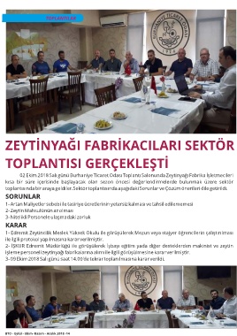 02 Ekim 2018 Salı günü Burhaniye Ticaret Odası Toplantı Salonunda Zeytinyağı Fabrika İşletmecileri