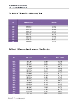 Balıkesir Nüfusunun Yaş Gruplarına Göre Dağılım