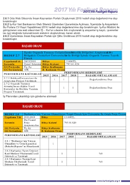 2.6.3 Üyeler m ze İnsan Kaynakları Portalı ç n Ş fre Üret lmes 2016 hedefi olup değerlend rme dışı