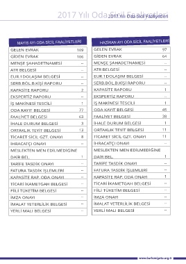 2017 Yılı Oda Sicil Faaliyetleri