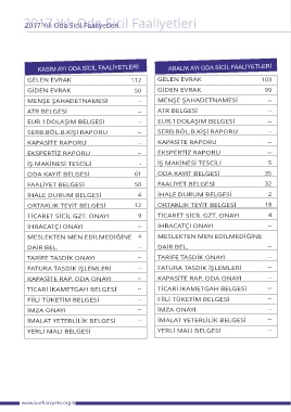 KASIM AYI ODA SİCİL FAALİYETLERİ ARALIK AYI ODA SİCİL FAALİYETLERİ
