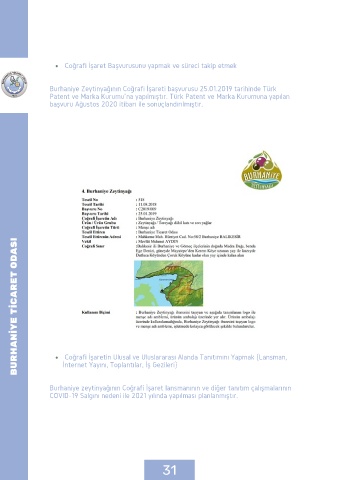 Burhaniye Zeytinyağının Coğrafi İşareti başvurusu 25.01.2019 tarihinde Türk