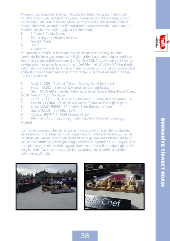 hediye edilmiştir. Ardından şefler tarafından yarışma menüsü anlatılmıştır.