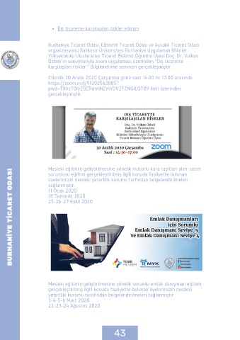 Özbek’ in sunumlarıyla zoom uygulaması üzerinden “Dış ticarette