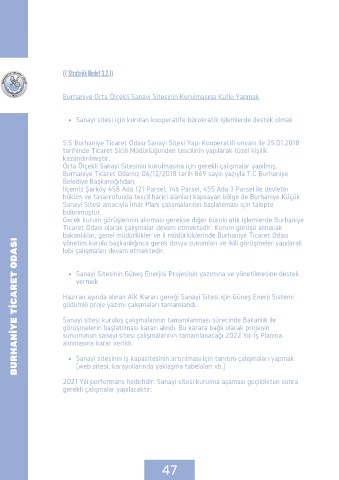 2021 Yılı performans hedefidir. Sanayi sitesi kurulma aşaması geçildikten sonra