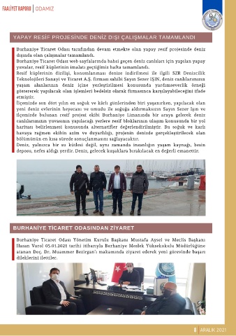 ilçemizde bulunan resif projesi ekibi Burhaniye Limanında bir araya gelerek deniz
