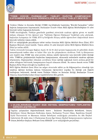 dağıtım kampanyası kapsamında, Burhaniye Ticaret Odası Milli Eğitim Müdürlüğüne 55 adet