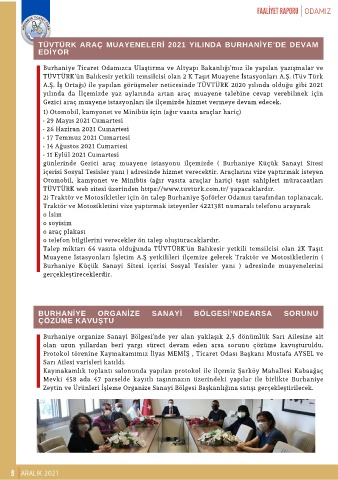 günlerinde Gezici araç muayene istasyonu ilçemizde ( Burhaniye Küçük Sanayi Sitesi