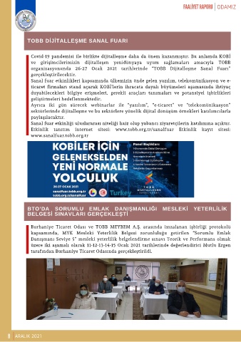 organizasyonunda 26-27 Ocak 2021 tarihlerinde “TOBB Dijitalleşme Sanal Fuarı”