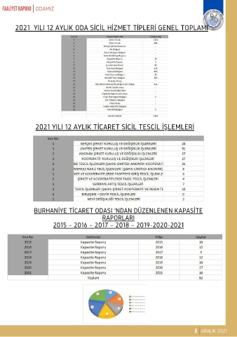 FAALİYET RAPORU ODAMIZ 2021 YILI 12 AYLIK ODA SİCİL HİZMET TİPLERİ GENEL TOPLAMI 2021 YILI 12 AYLIK TİCARET SİCİL TESCİL İŞLEMLERİ BURHANİYE TİCARET ODASI ‘NDAN DÜZENLENEN KAPASİTE RAPORLARI 2015 – 2016 – 2017 – 2018 – 2019-2020-2021 8 ARALIK 2021