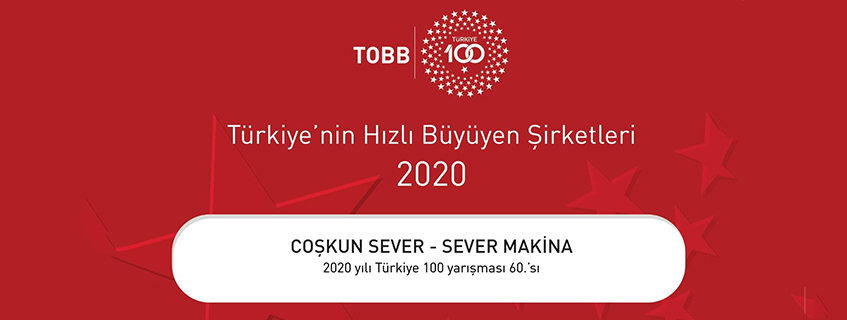 Burhaniye Tİcaret Odamız üyesi COŞKUN SEVER - SEVER MAKİNA 2016-2018 yılları arasında %265,2 büyüyerek Türkiye’nin en hızlı büyüyen 100 şirketi arasında 60. sırada yer aldı.