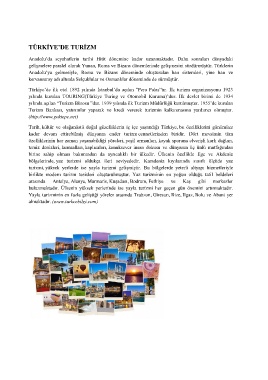 TÜRKİYE’DE TURİZM