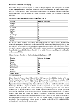 Uluslararası düzeyde yürütülen seyahat ve turizm rekabetçilik raporuna göre 2017 yılında en başarılı
